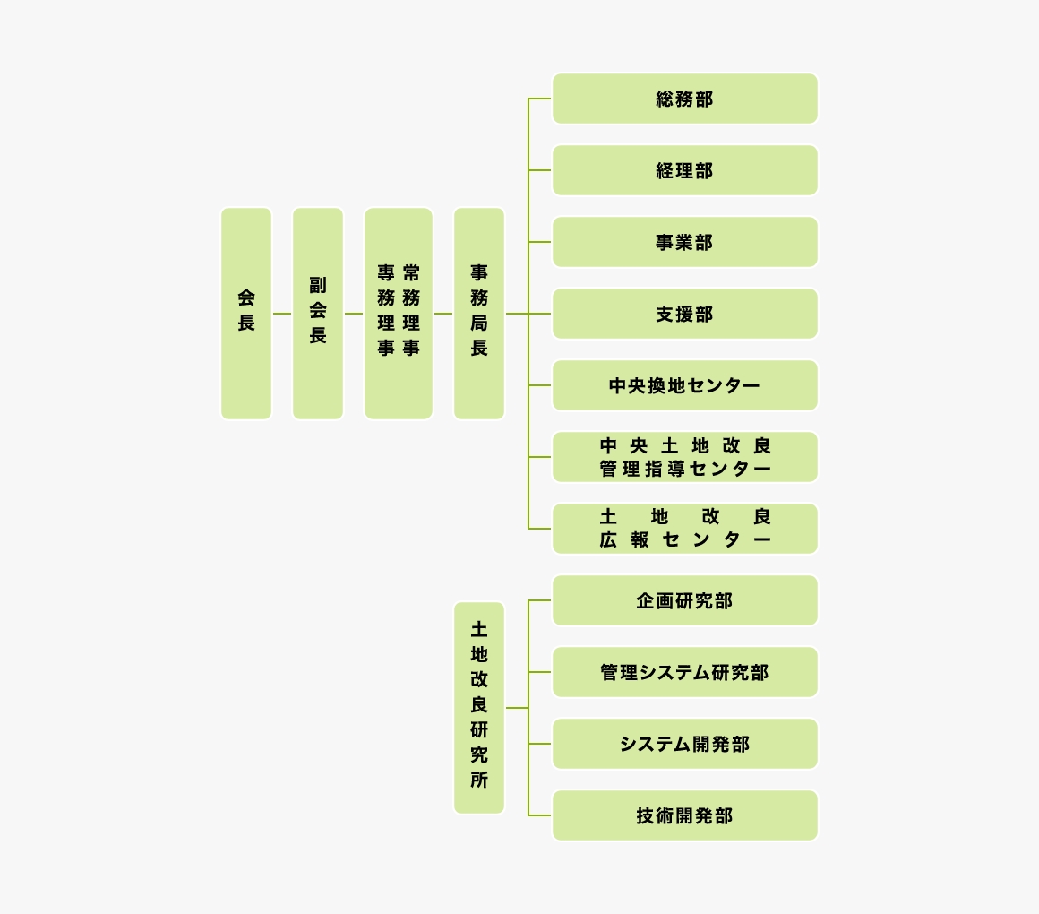 全国土地改良事業団体連合会(全国水土里ネット)の沿革や組織図、事務局および各事務局の活動内容、また当会の行う事業についてご紹介いたします。