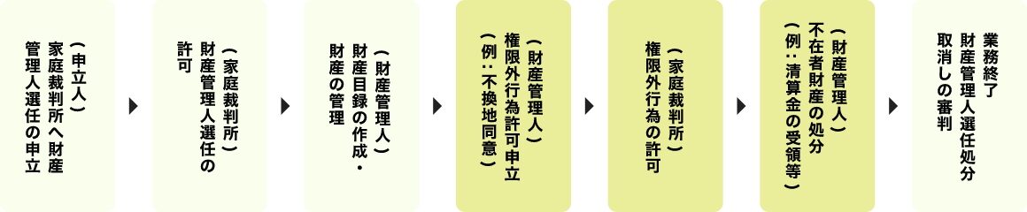 | 不在者財産管理人による事業施行同意及び土地の売却を行った事例(マニュアルP101(事例4)、マニュアルP142(事例8)) |